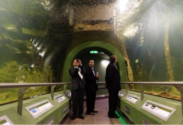 Az üvegalagutat úgy építették meg, hogy a látogató úgy érezze, ő is ott van a vízben a halak között. Négy szinten mutatja be a Tisza- völgy élővilágát, ebből kettő szint a föld alatt található.