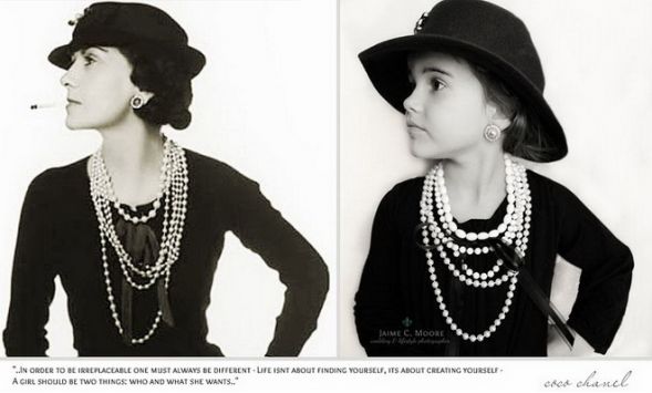 Emma tehát ötödik születésnapján öt meghatározó nő – Coco Chanel, Susan B. Anthony, Amelia Earhart, Helen Keller és Jane Goodall – bőrébe bújt édesanyja fényképezőgépe előtt. Ahhoz, hogy a hasonlóság minél nagyobb legyen, Emma ruháját és haját is úgy tervezték meg, ahogy az adott nőalak egykor viselte. A fekete-fehér felvételek alján az ikonikus nők egy-egy híressé vált mondata látható, amit a képek után magyarul is elolvashattok.