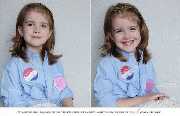„Not just a girl” (magyarul: Nem csak egy lány) a címe annak a fotósorozatnak, amelyet Jaime Moore készített kislányáról, Emmáról. Moore igazán kreatív ajándékkal szerette volna meglepni gyermekét a születésnapján, így elhatározta, hogy nem Disney hercegnőként, vagy Barbie babaként örökíti meg őt. Kiválasztott öt olyan nagy hatású nőt a történelemből, akik ma is méltó példaképei lehetnének kislányának és bárkinek.